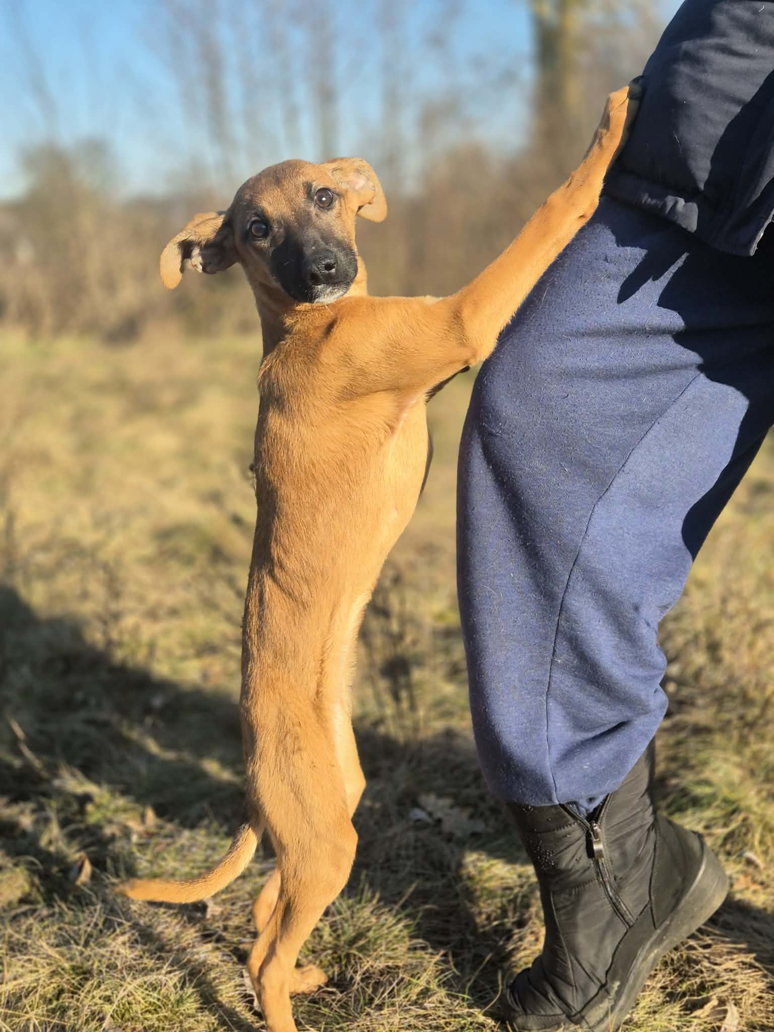 Ma 5 miesięcy, sięga pod kolano, waży ok. 5-6 kg, ma figurę sarenki.