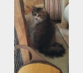 Dobromił ma około 3-4 lat i na pewno wychował się przy człowieku, do którego lgnie niczym wierny pies. Głośno wola o głaskanie, kocha drapanie pod bródką i wskakuje na kolana doradzając się o porcję czułości. Dołączył w Domu Tymczasowym do dwóch innych kotów i żyje z nimi w zgodzie.