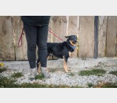 Porto, około półtoraroczny psiak odebrany z łańcucha, trochę w typie kelpie. Swoje krótkie życie, zamiast na poznawaniu świata i zabawach, spędził na metrowym łańcuchu przy dziurawej budzie. Jest pieskiem spokojnym, nieśmiałym w pierwszym kontakcie - potrzebuje chwili, zeby się przekonać, ze nie spotka go z strony człowieka żadna krzywda. Jest łagodnym psiakiem. Trochę boi się chodzić na smyczy - ale nie ciągnie.