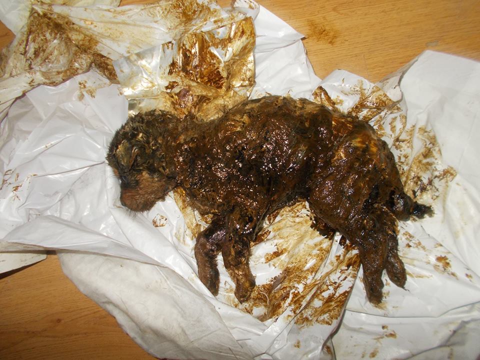 Mała była topiona w smole i dzięki pomocy Pani Doroty, która odratowała sunie, może być ona dzisiaj z nami :-)