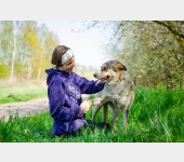 Bardzo ładnie znosi zabiegi pielęgnacyjne. Dogaduje się zarówno z psami jak i sukami.