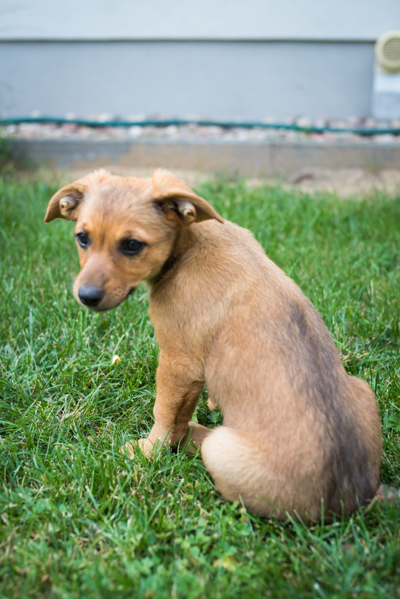 Szczeniorka Psotka wypatuje dobrego domku! Psotka miała szczęście. Odebrana z Mazur razem z mamą, uwiązaną na łańcuchu przyjechała w okolice Serocka i szuka najlepszego domku na świecie.