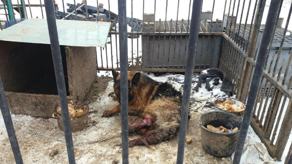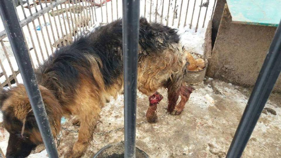 W ostatnim, czwartym kojcu oczom inspektorów ukazał się straszny widok. Na pokrytej warstwą odchodów ziemi, przypięty łańcuchem leżał owczarek niemiecki a z jego tylnej łapy sączyła się krew. Właściciel spytany co się stało psu, stwierdził, że kilka dni temu „chyba” złamał nogę i właśnie miał jechać do weterynarza… Ponieważ widać było, że łapa jest w bardzo złym stanie inspektorzy natychmiast zabrali psa i zawieźli go do lecznicy w Wieliczce, do bardzo dobrego chirurga. Kiedy inspektorzy dojechali na miejsce, czekał już na nich zespół weterynarzy, który miał przeprowadzić operację. Stan psa oceniono na zły i trzeba natychmiast operować.