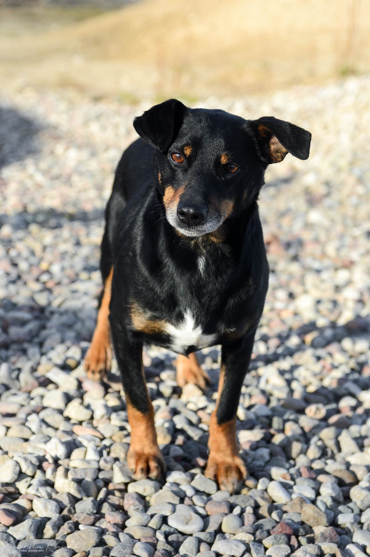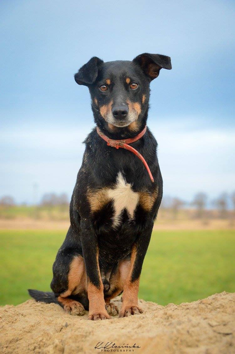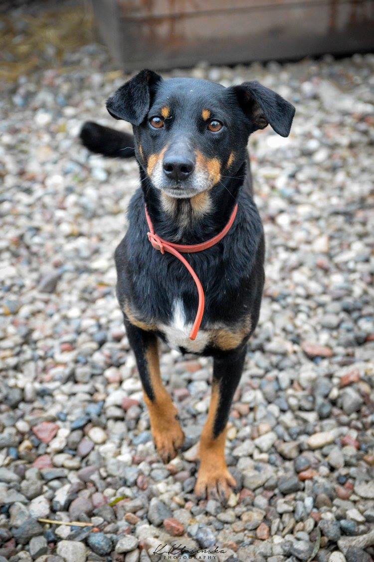 Puszek to średniej wielkości, około 8 letni pies. Trafił do naszego schroniska po jednym z telefonów, iż od kilku dni błąka się, nikomu nieznany pies.