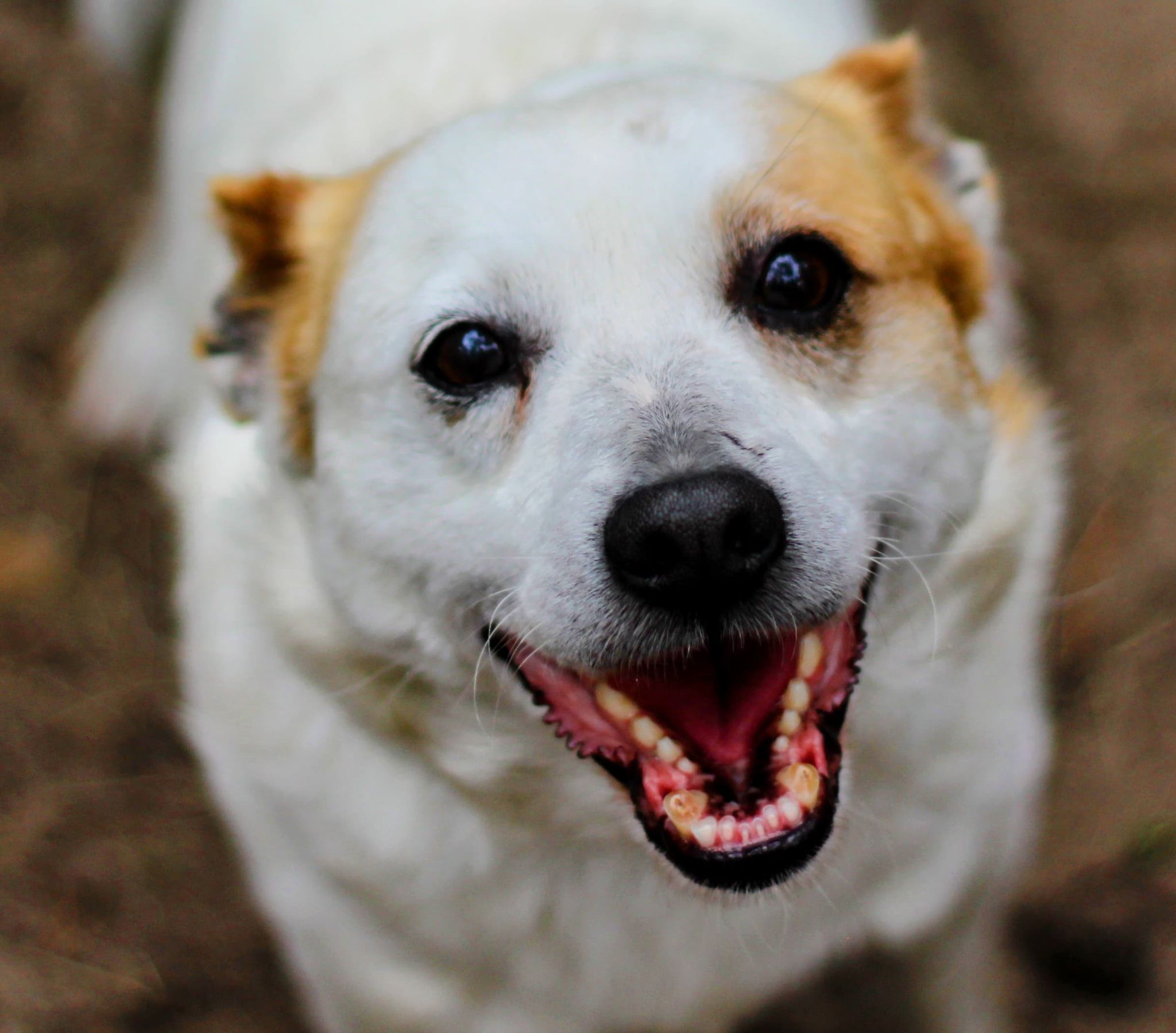 Może też mieć mniej, ale widać, że nie miał dobrego życia. Zęby starte. Jest średniej wielkości, biały w żółte łatki.