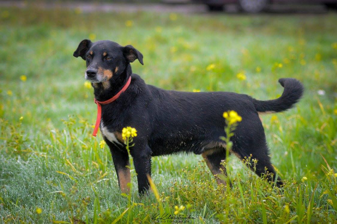 Puszek to średniej wielkości, około 6 letni pies. Trafił do naszego schroniska po jednym z telefonów, iż od kilku dni błąka się, nikomu nieznany pies.