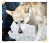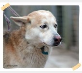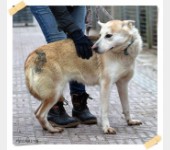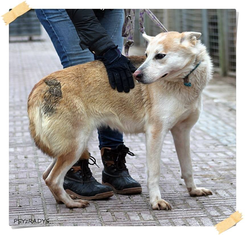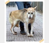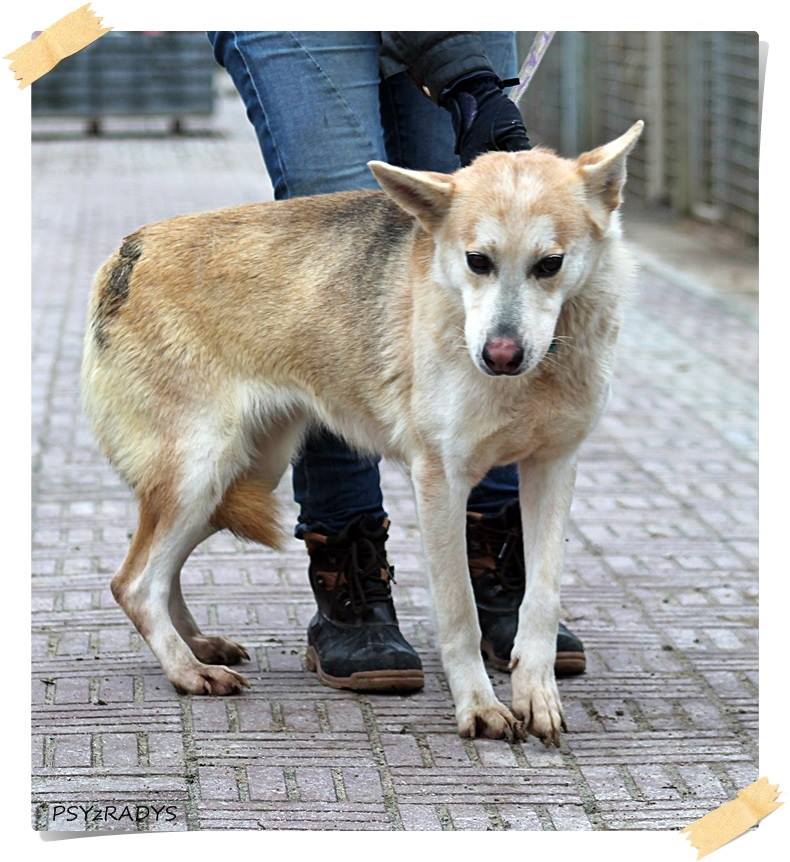 ABBA - panna mikshaszczaneczka, w wersji pastelowej. Z pyska i oczu patrzy jej sympatycznie i przyjaźnie. Niestety, niemal rok pobytu w schronisku robi swoje: jest i ogon podkulony pod siebie, i w ogóle cały pies nieco przygięty do ziemi. Trochę wystraszona i zdominowana w kojcu (w którym rządzi koleżanka, a koleżanka rozdaje karty i ona sama chce być przede wszystkim blisko człowieka, przez co reszta jest rozstawiana po kątach). Abba jest bardzo miłą suką, ładnie ukierunkowaną na człowieka. Tylko smutną, bo zmarnował jej się już prawie rok - z dala od ludzi, od przestrzeni i wolności.