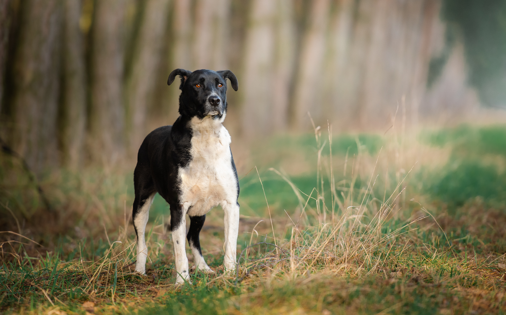 To taki poczciwy psiak. Wpatrzony w człowieka i ostrożny, aby nie zrobić nic źle...
