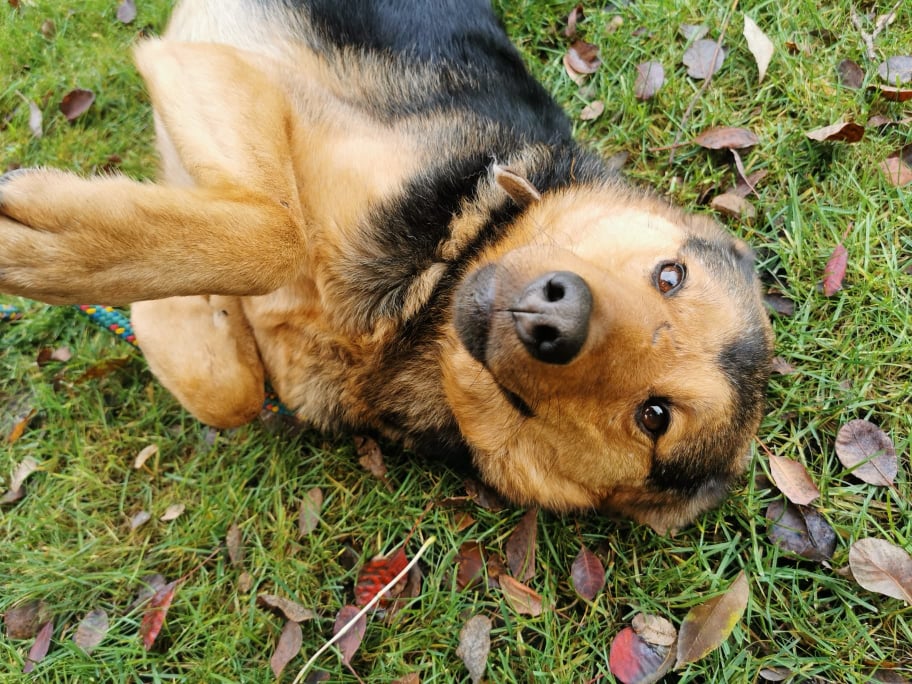 Powolutku dochodzi do siebie, jest dużo spokojniejszy, interesuje się wszystkim dookoła, pięknie chodzi na smyczy.