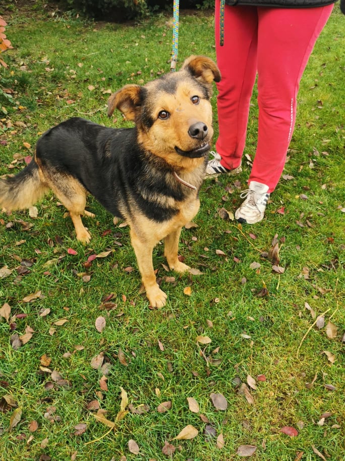 - całkowicie nieagresywny do innych psów, w schronisku w Wojtyszkach został pogryziony i ma bliznę na pyszczku