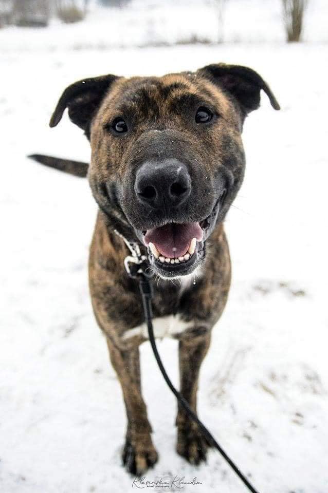 Tayson to młody, około 5 letni pies. Ma przyciągającą uwagę urodę, pręgi niczym u tygrysa i niesamowity uśmiech, który topi nawet najtwardsze serca.