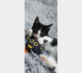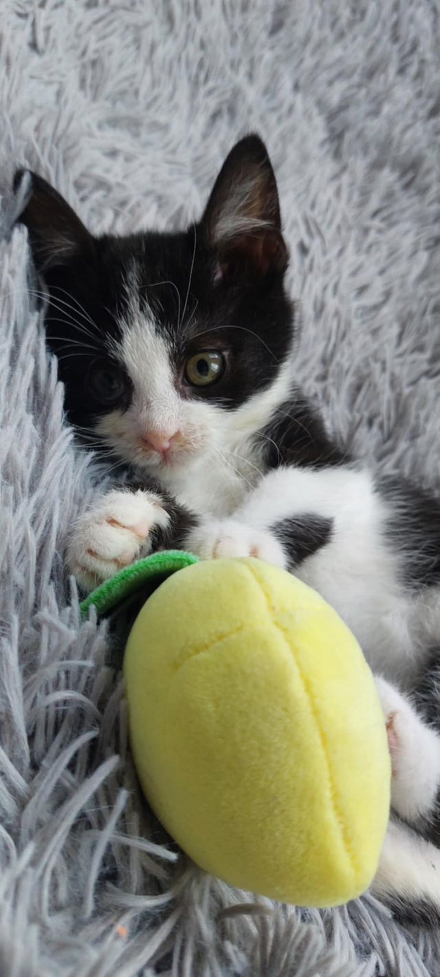 Obecnie przebywa w domu tymczasowym u jednej z naszych pracownic, tam uczy się kociego życia i… idzie mu doskonale!