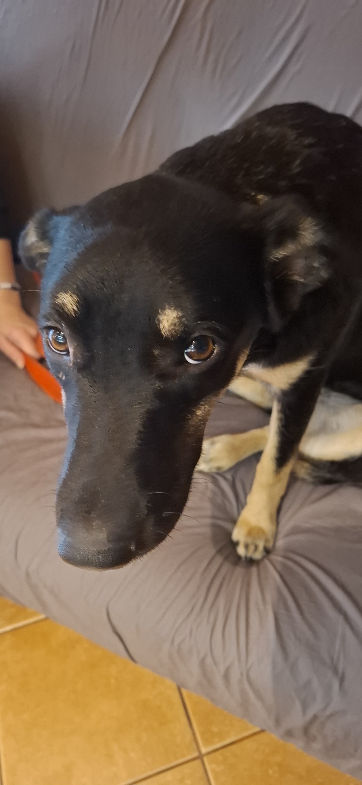 Poznaj Tutkę — około 9-miesięczną, czarną, smukłą sunię na długich, eleganckich łapkach. Waży ok. 20 kg i jest cudownym połączeniem delikatności i młodzieńczego entuzjazmu.