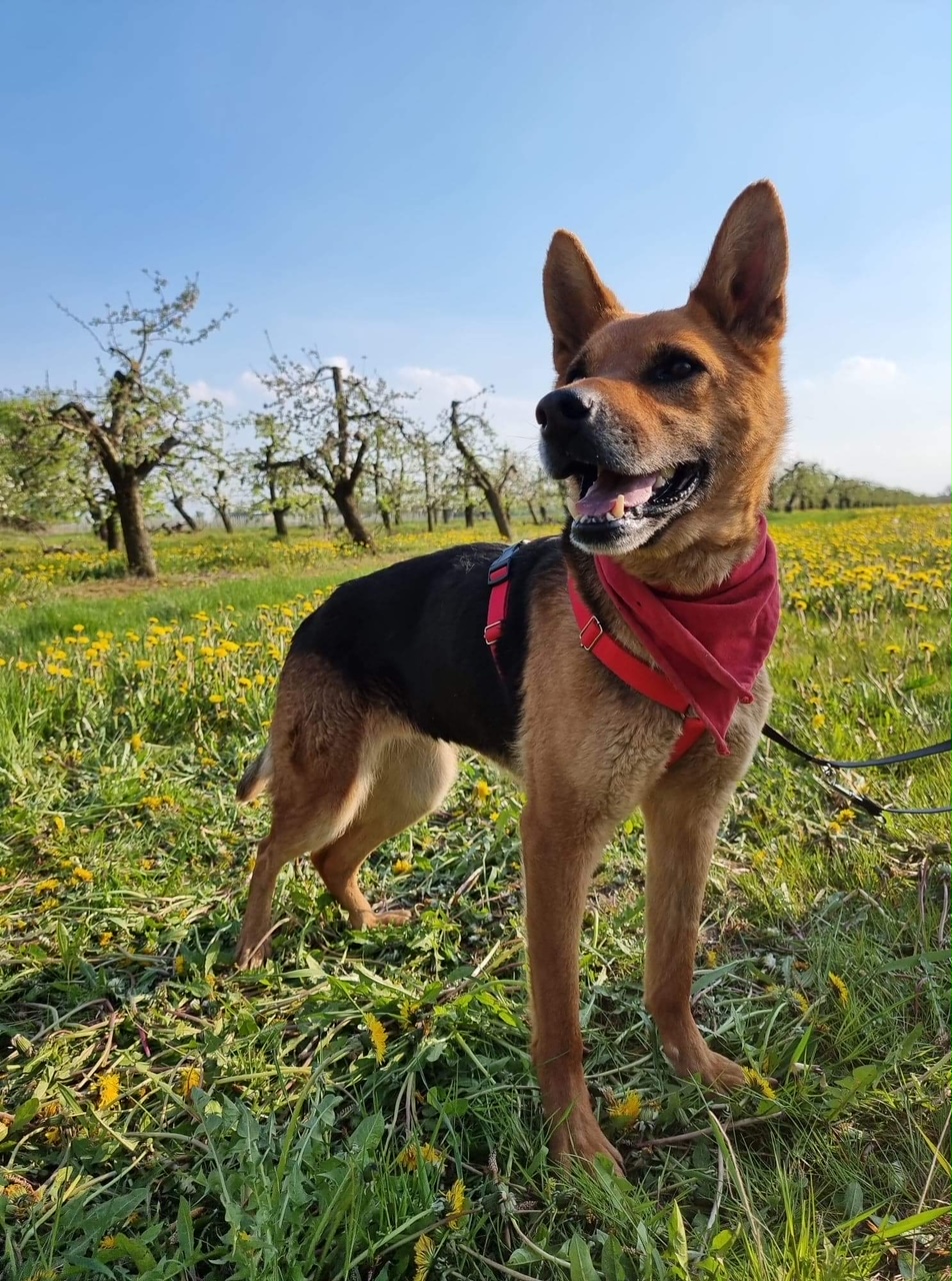 Pistacja to około 3 letnia sunia która waży 19 kg. Sunia została uratowana z łańcucha na którym spędziła całe swoje życie. Mimo tego co przeszła to przyjazna, wesoła, proludzka sunia. Chodzi na smyczy. Grzeczna, ułożona i kochana. Tolerancyjna do psów a suń zależy których.