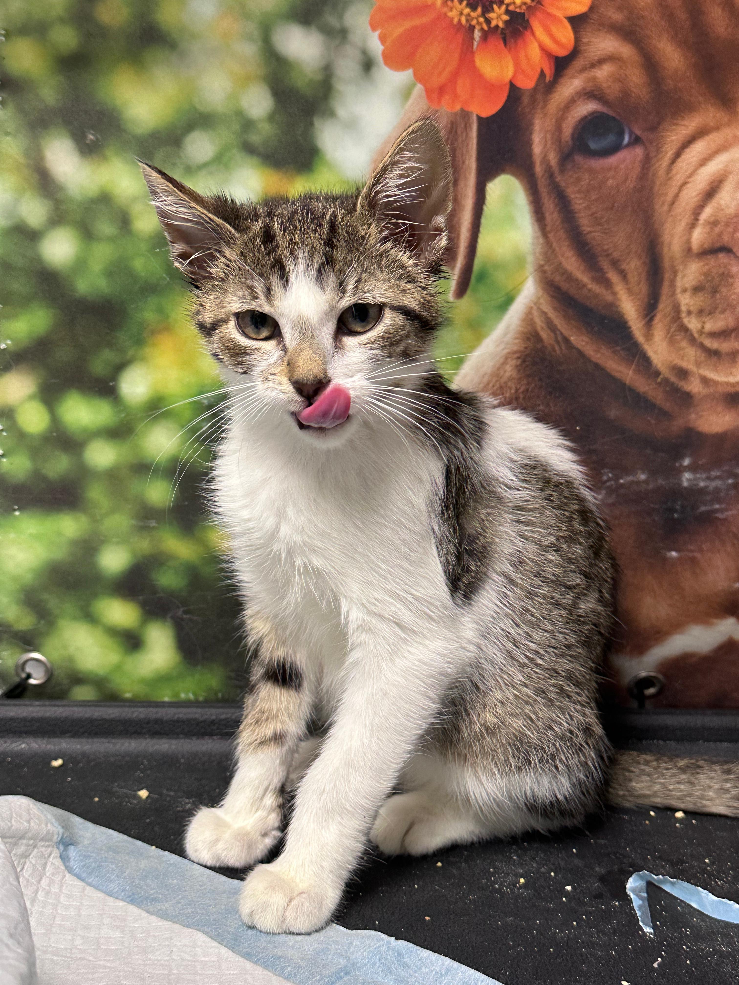 Urodził się w maju 2025 roku. To młody, wesoły kociak, który uwielbia zabawy i towarzystwo.