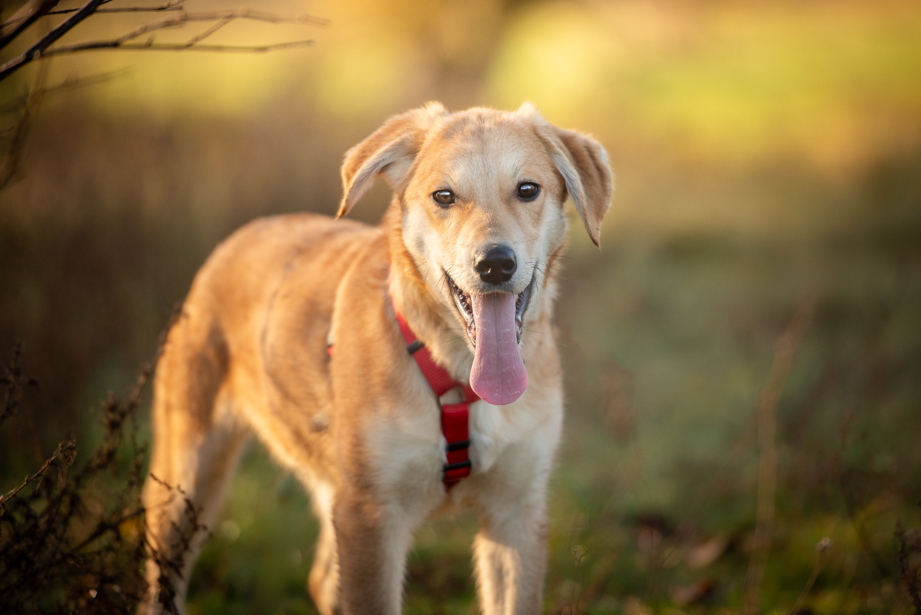 Nowy dom musi się liczyć z tym, że szczeniakowi trzeba cierpliwie pokazywać świat, że może się bać tak głupich rzeczy jak kontener czający się w cieniu albo pani poruszająca się o kulach. Nie ma w nim jednak agresji, jest ostrożna ciekawość, dlatego wiemy, że u odpowiedzialnej rodziny będzie fantastycznym kompanem :)