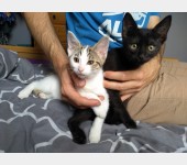 Umie korzystać z kuwety, sam je i pije, oraz miauczy gdy czegoś bardzo chce :-)