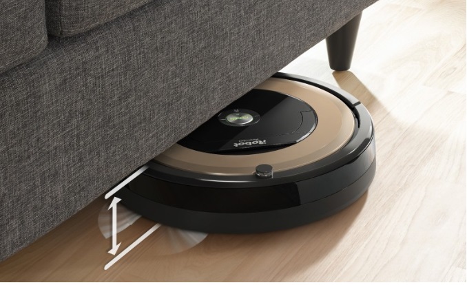 IRobot Roomba 895 jest niski, dzięki czemu posprząta podłogę pod krzesłami, fotelami czy łóżkiem.