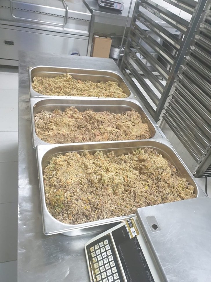 Dzięki współpracy Animal Action EAU piątkowe pozostałości jedzenia są teraz karmą dla psów ze schroniska. Pomysł był sukcesem. Resztki pocięto i zmielono w tej samej kuchni, a następnie przewieziono do schroniska, w którym futrzaki otrzymały smaczny posiłek..