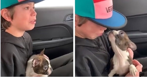 13-letni chłopiec został przytłoczony emocjami po tym, jak otrzymał szczeniaka jako niespodziewany prezent urodzinowy od niedawno zmarłego ojca.