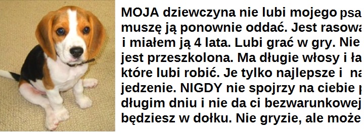 Powiedziała, że nie lubi jego beagle Molly i dała mężczyźnie ultimatum: ja albo pies.