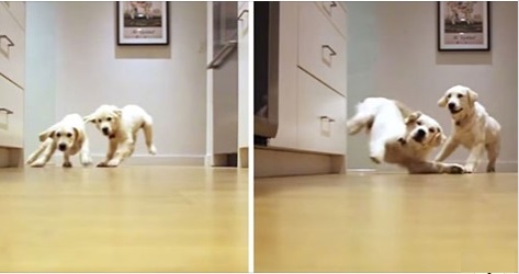 Właściciel tych dwóch goldenów dobrze się bawił filmując je jak biegną do miski z jedzeniem przez 9 miesięcy. To imponujące video, w którym widać, jak psy rosną na naszych oczach!