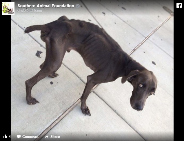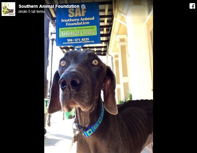 Dotyczy to wyżła weimarskiego, którego zdjęcie pojawiło się na stronie schroniska dla zwierząt w Luizjanie. Pies , imieniem Alex, wyglądał dosłownie jakby umierał z głodu.