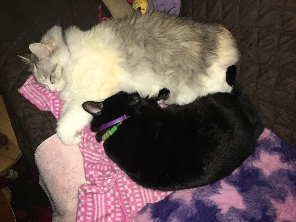 Dwa miesiace później kobieta oficjalnie zaadoptowała dwa czarne kociaki. Wysterylizowała i zachipowała. Kocięta szybko dostosowały się do nowego życia i polubiły kota, ktory mieszkał u niej w domu.