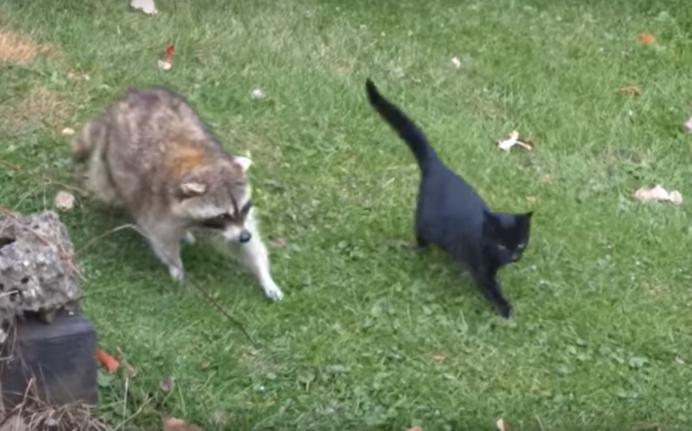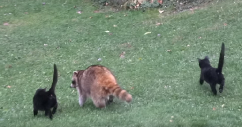 Kobieta początkowo myślała, że koty podążają za szopem, gdyż wiedziały, że dostaje tu jedzenie. Potem jednak zauważyła, że c hodzi o coś więcej. Kocięta zdawały się chronić szopa.