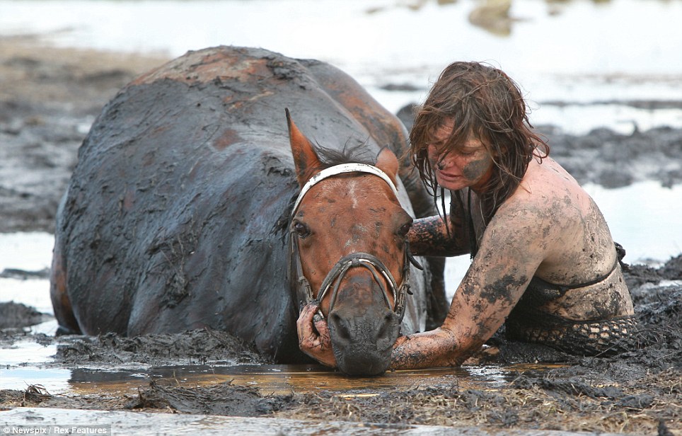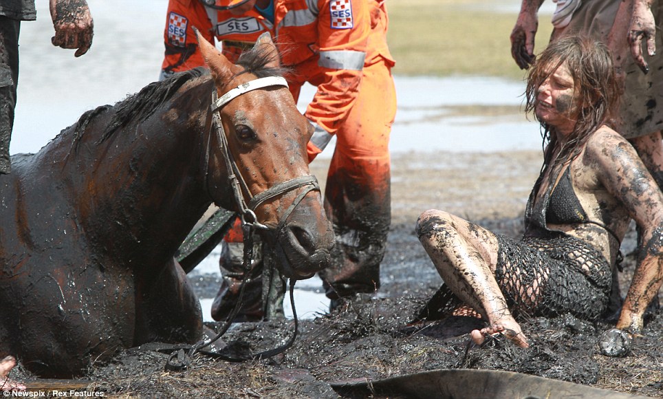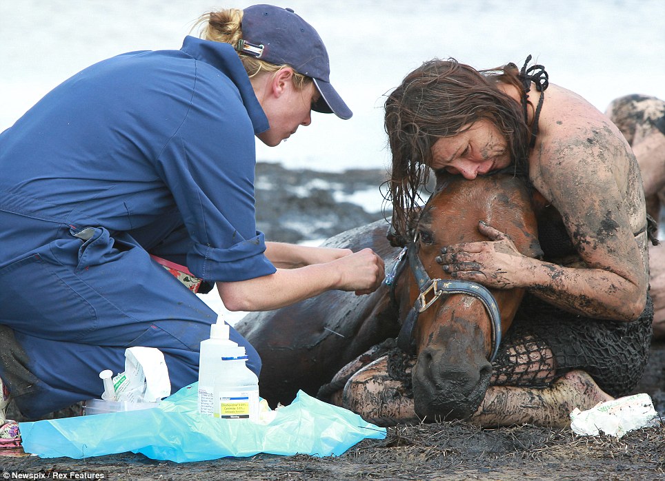 Wyczerpana i poplamiona błotem Nicole Graham, przez trzy godziny trzymała głowę uwięzionego konia Astro, zmagając się z przypływem. Konia czekała perspektywa utonięcia z uwagi na podwyższający się poziom wody. Nikt nie był do końca pewny, czy zdążą go uratować.