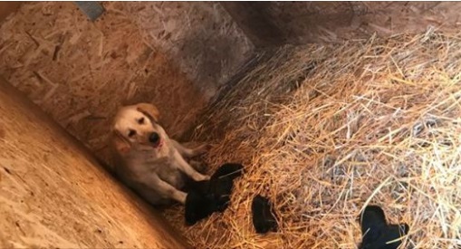 W tej pseudohodowli labradory żyły w skrzyni zbitej z płyty osb. Bez dostępu do powietrza i światła. Sunia i jej szczeniaki miały tylko lamkę dogrzewającą, która dodatkowo zwiększała temeraturę w upalne dni.