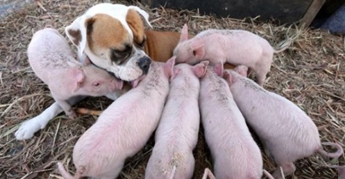 Od tego czasu pies i prosięta są nierozłączne i tworzą prawdziwą rodzinę.