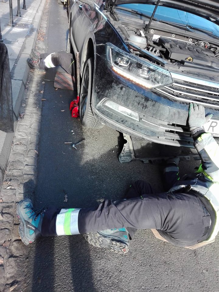 Podjeto decyzję o sprowadzeniu lawety, która podniesie samochód.