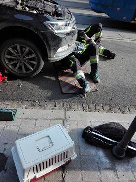 Po podniesieniu samochodu przez lawetę, po ok. 20minutach udało się oswobodzić kotka.
