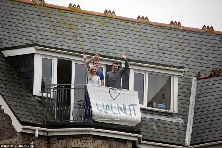 Wygodny w ciepłym kocu, Walnut był pocieszany przez nieznajomych.