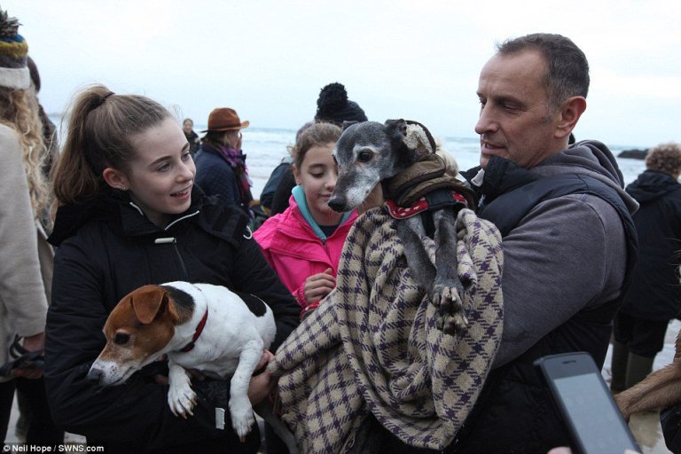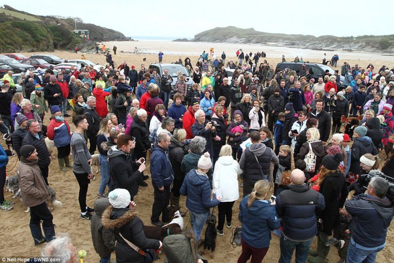 Setki miłośników zwierząt przyłączyło się do Marka i Walnuta na ostatni spacer po plaży.