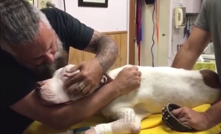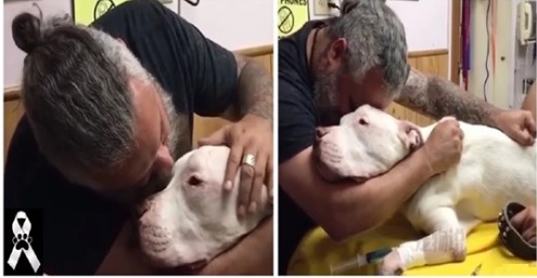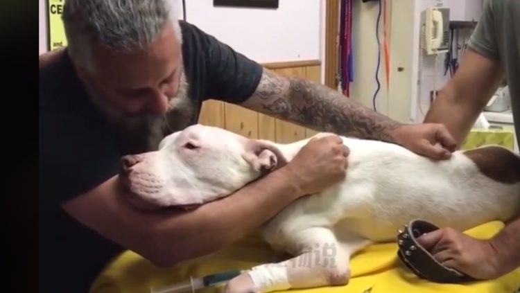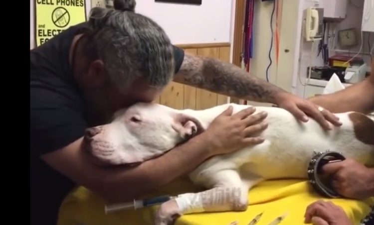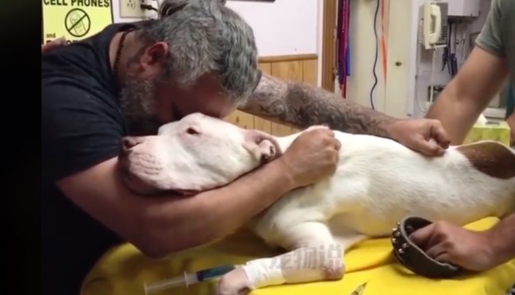 Pies ma już strzykawkę, więc za kilka minut będzie po drugiej stronie, ale nadal ma otwarte oczy. Jego właściciel nie znajduje pocieszenia i pochyla głowę, by dołączyć do swojego futrzanego, i wtapia się w głęboki uścisk, którego nigdy by nie skończył.