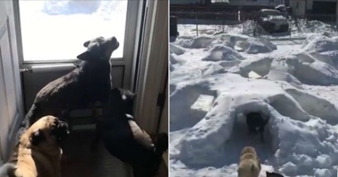 W końcu zamienił ścieżki w tunele wypełnionego śniegiem, aby ułatwić psom poruszanie się.