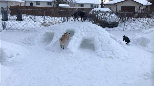Genialny plan Einarsona? Zamienić podwórko w zimową krainę tuneli śnieżnych.