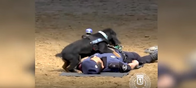 Pies o imieniu Ponczo, podczas specjalnego pokazu policji w Madrycie udowodnił, że te czworonogi można nauczyć dosłownie wszystkiego- nawet reanimacji.