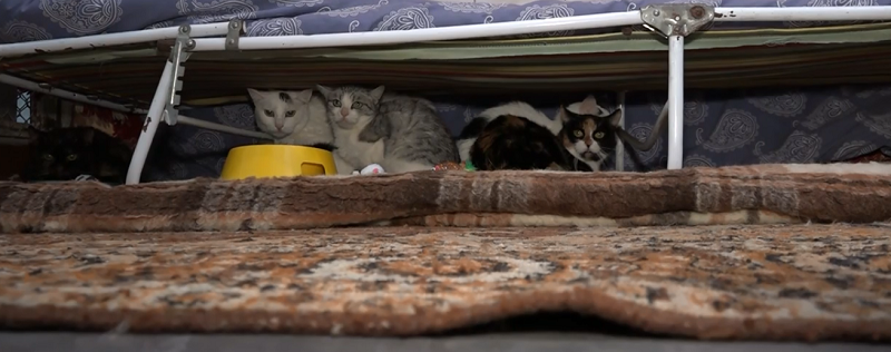 Pani Krystyna zmarła w wieku 62 lat. Osierocone koty są przerażone w schronisku, nie chcą nic jeść. Ciągle siedzą przytulone do siebie. Bardzo się boją. W swoim życiu znały tylko Panią Krystynę, za którą z pewnością tesknią. Jedna, 16-letka kotka jest niewidoma.