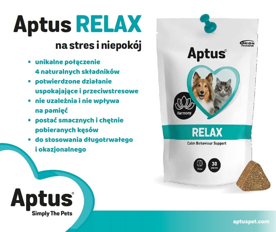 Jeśli Twój pies ma poważne problemy z lękiem w Sylwestra, mogą być pomocne produkty uspokajające takie jak Aptus Relax. Jest to suplement o działaniu uspokajającym i przeciwstresowym, przeznaczony zarówno dla psów jak i kotów.