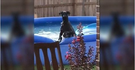 Moment, w którym pies spokojnie pływa w przydomowym nadmuchiwanym basenie i zostaje przyłapany na tej zabawie przez swojego właściciela, jest po prostu zbyt śmieszny żeby go opisać.