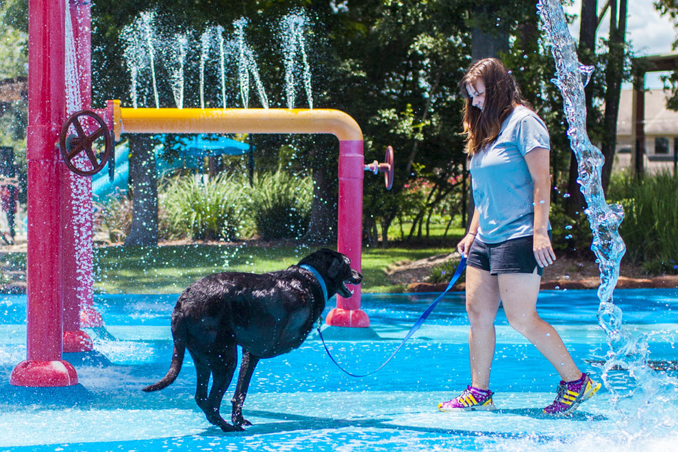 Gdy czekaliśmy na weterynarza, Kristen powiedziała, że idziemy na spacer. Potem ktoś powiedział: „Dlaczego nie pójdziesz się pobawić w parku wodnym?" Więc poszliśmy tam!