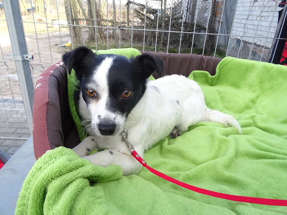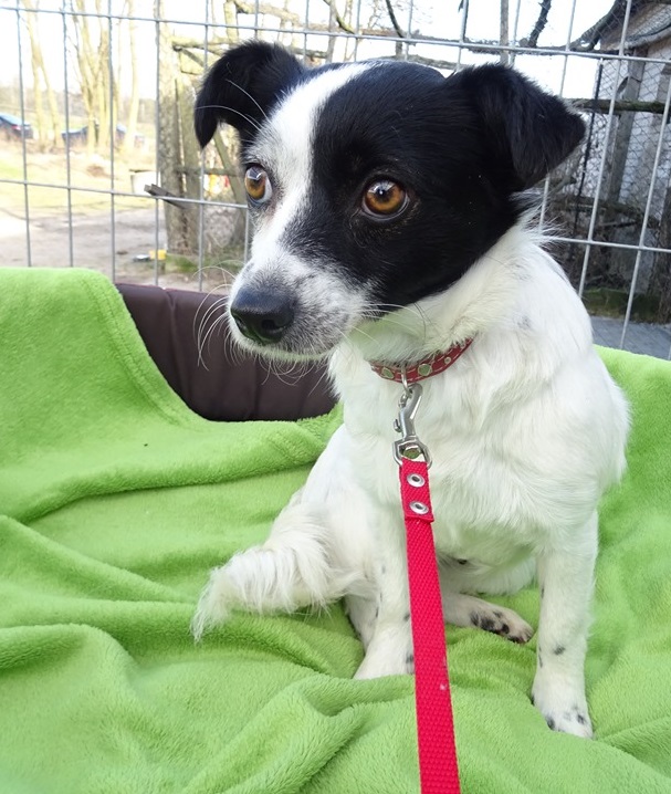 16.02.2020 r. w rejonie stacji benzynowej Orlen na trasie z Ciechanowa do Płocka (około 20 km za Ciechanowem) uciekła mała sunia. Piesek ma biały tułów, delikatnie nakrapiany, głowa w czarne łaty. Sunia jest płocha, ale nie agresywna. Łupinka w tym dniu została adoptowana ze schroniska Canis w Kruszewie koło Ostrołęki. Podobno uciekła z samochodu choć wiele wskazuje na to, że została porzucona.