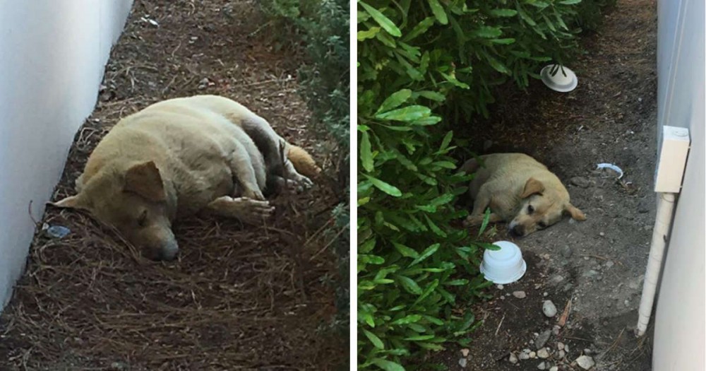 Pierwszą rzeczą, którą zauważyli… Brzuch starego psa był rozdęty przez braku regularnego dostępu do jedzenia lub wody przez kilka miesięcy.
