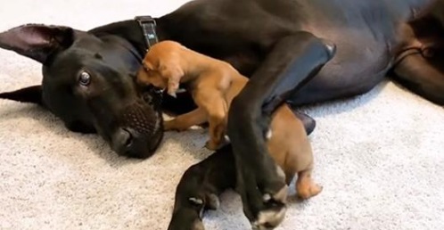 Obejrzyj wideo, interakcja między dwoma psami jest cudowna.