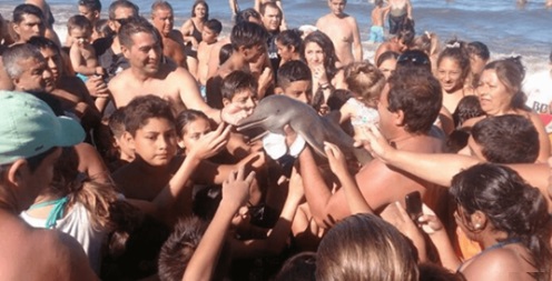 Na ruchliwej hiszpańskiej plaży w Mojacar w Almeirze, morze wyrzuciło na brzeg małego delfina. Jednak zamiast natychmiast próbować wrzucić go z powrotem do wody lub powiadomić władze o jego trudnej sytuacji, turyści zaczęli robiić sobie z nim selfie. Kiedy zdjęcia zaczęły obiegać internet, osoby te zostały skrytykowane przez grupę ratującą dziką przyrodę, która powiedziała, że delfin był „przerażony” tym, co się działo. Zdjęcia turystów głaszczących małego ssaka oburzyły internautów.