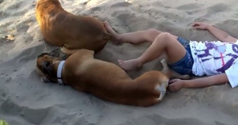 Wiele psów nie odwzajemni się zachowaniom irytujących dzieci ale ten bokser dokonał idealnej zemsty na dziewczynce, która wielokrotnie kopała go w brzuch.
