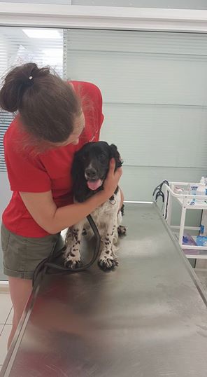 Audra nie mogła zostawić biednego psa w tej sytuacji. Zabrała go do domu, gdzie zdjęła przyczepiony przedmiot do szyi i wykąpała psa., zdjęła kotwicę z szyi i wysuszyła. Potem zabrała go do weterynarza na pełne badania.